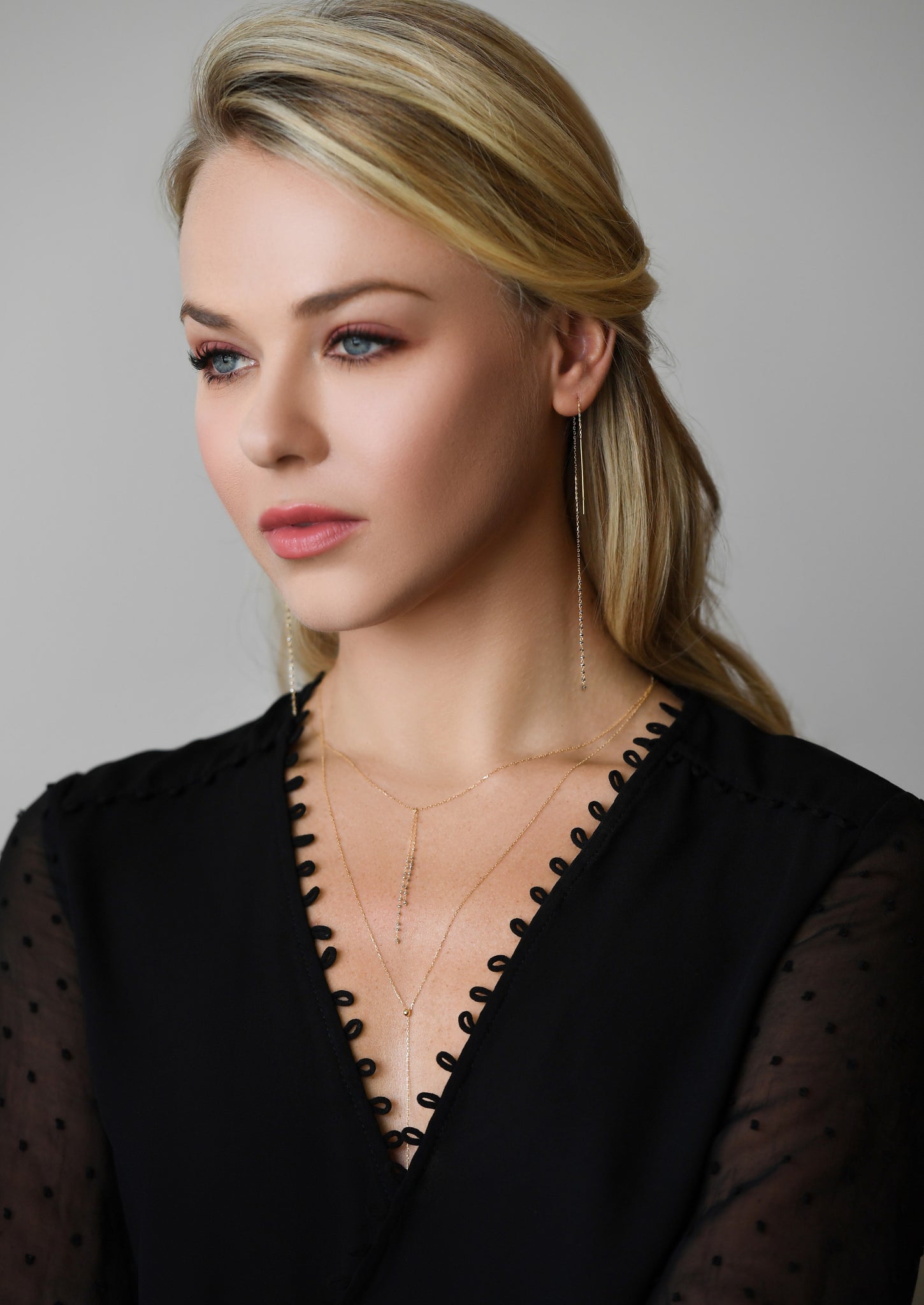 You can add a beautiful gold beads necklace to accomplish this stunning look.