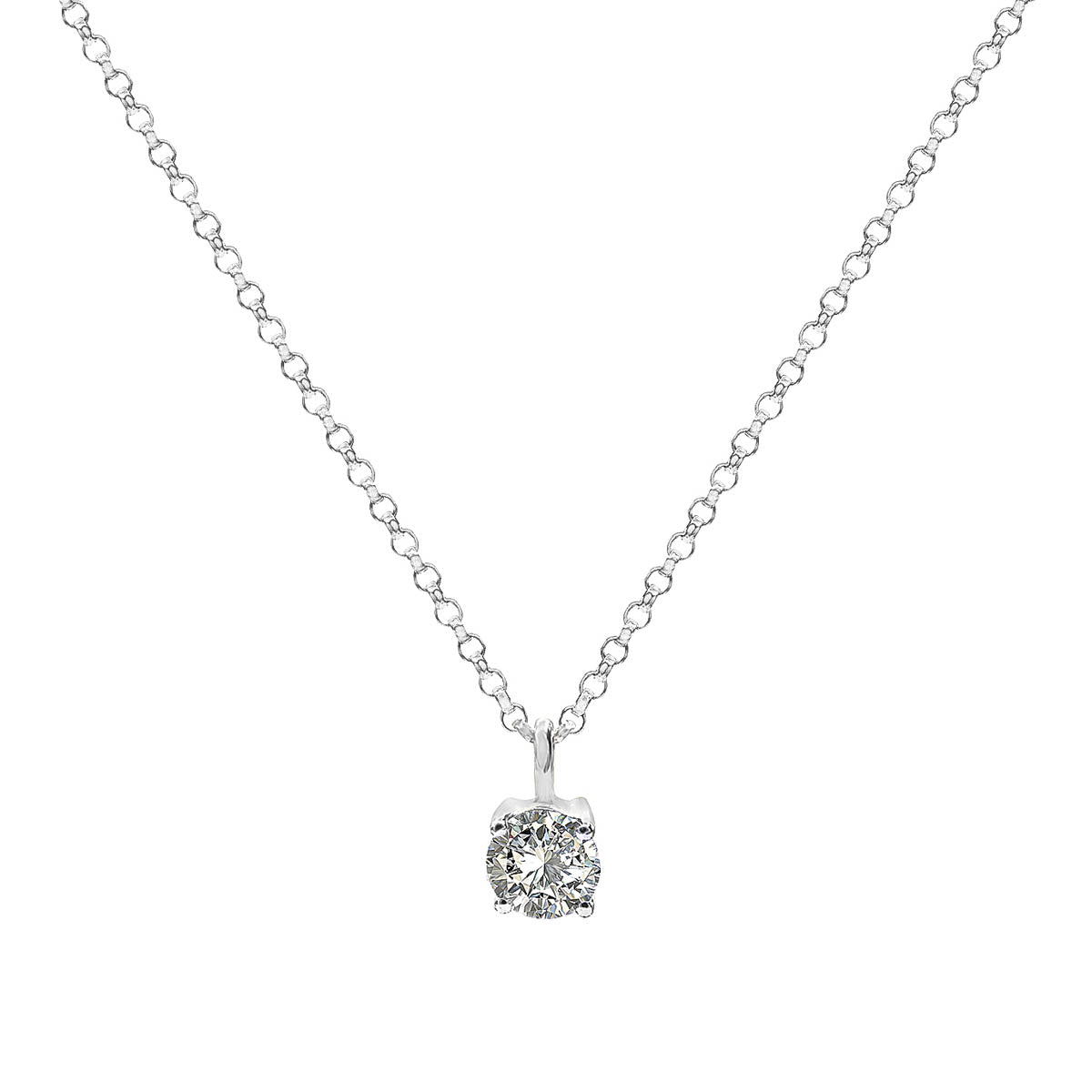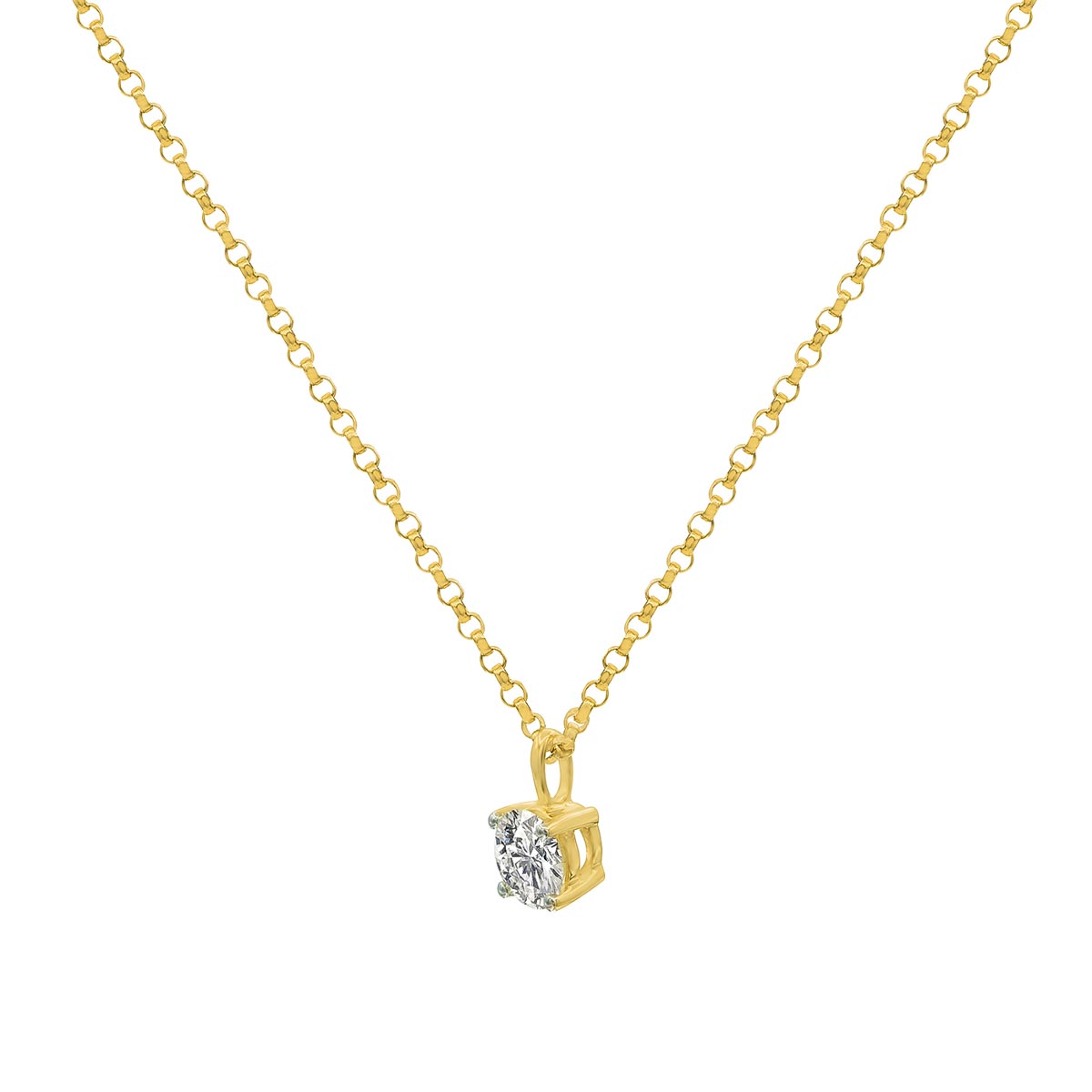 A beautiful round diamond is accentuated in this elegant, classic four-prong pendant. The pendant dangles gracefully from a delicate golden chain. A perfect present to you or your loved one. For stunning day to night looks, look no further.