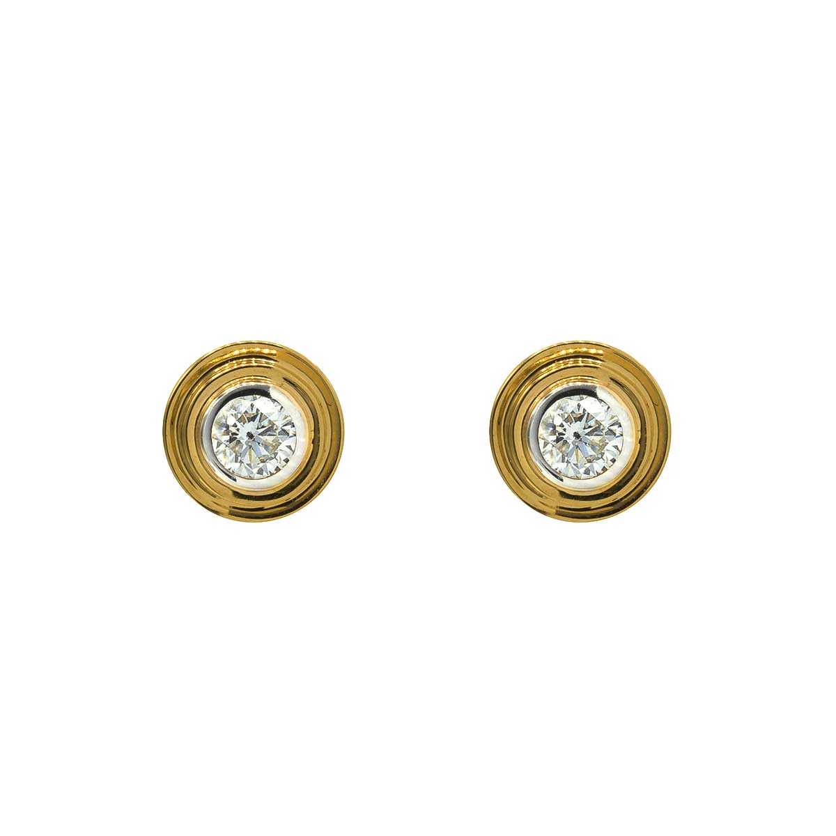 Geometric Double Bezel Diamond Stud Earrings Small Size